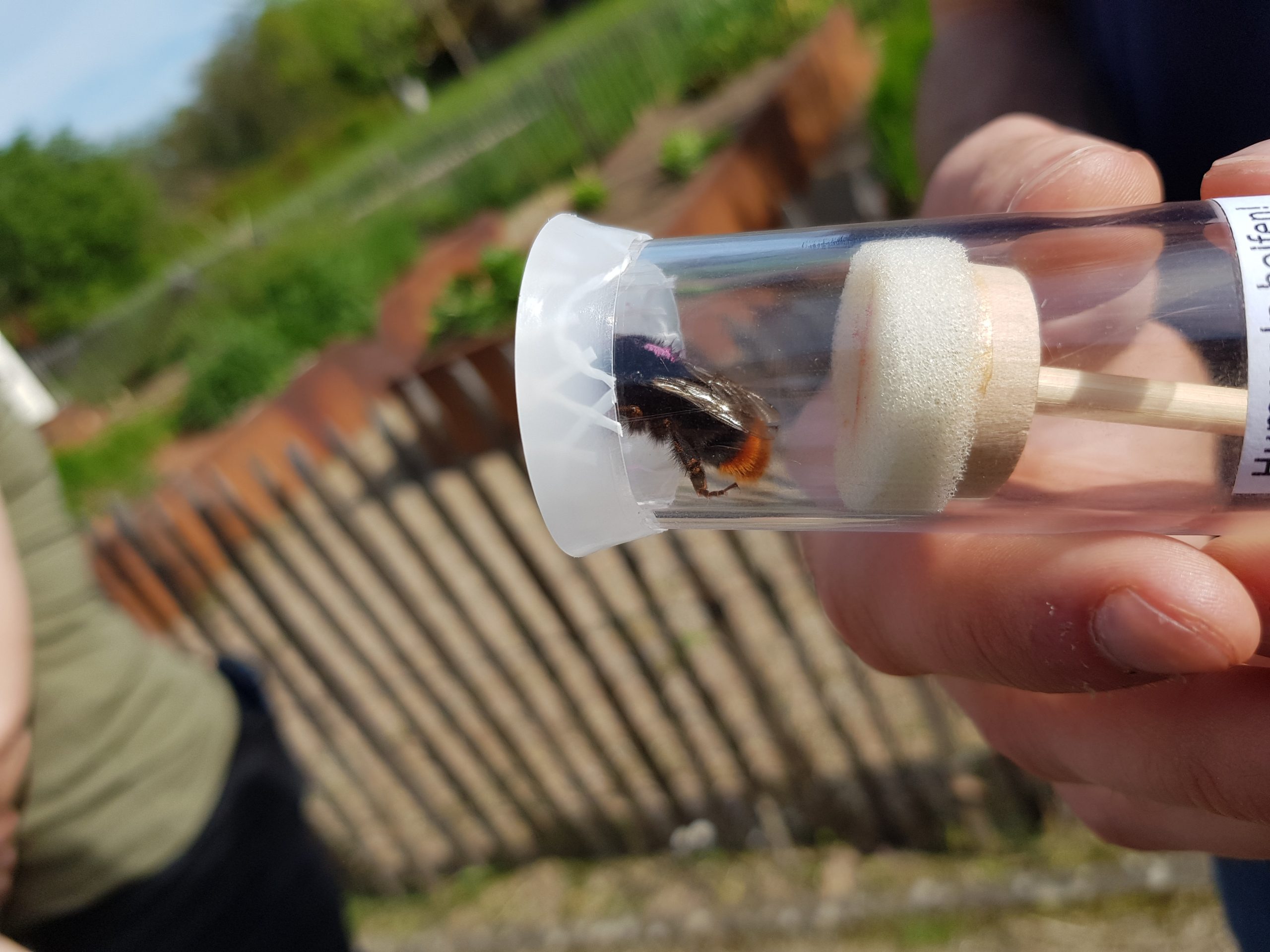 Mit unseren Hummel WP-Kursen und unserem tollen Schulgarten versuchen wir in Zusammenarbeit mit der Universität Mainz diesem Trend entgegenzuwirken. Wie bieten den Insekten spezielle Nisthilfen an oder sorgen in Form von Wildblumenwiesen oder Hochbeeten mit Frühblühern für ausreichend Nahrung. Dabei lernen wir die verschiedenen Bienen- und Hummelarten kennen, ihre Biologie und wie man mit ihnen – auch ohne Angst – umgehen kann.